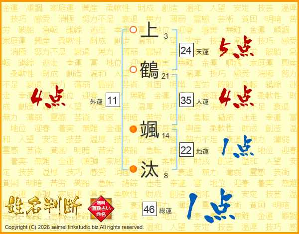 上鶴颯汰さんの総運は46画の1点!