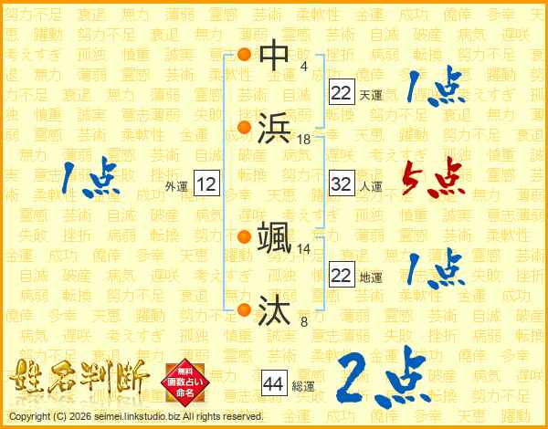 中浜颯汰さんの天運は22画の1点!