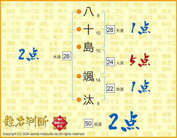 八(8画)十(10画)島(10画) 颯(14画)汰(8画)