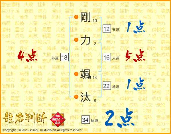 剛力颯汰さんの総運は34画の2点!