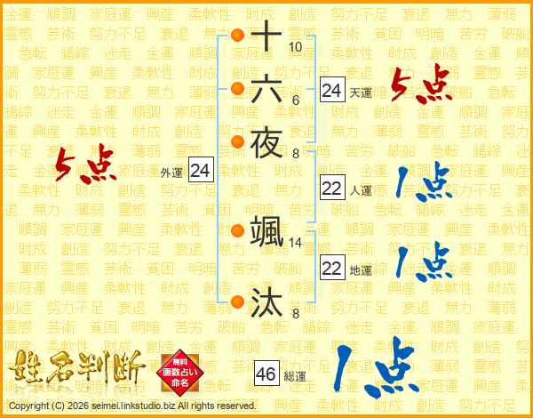 十(10画)六(6画)夜(8画) 颯(14画)汰(8画)