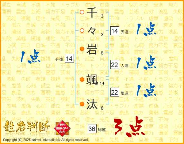 千々岩颯汰さんの総運は36画の3点!