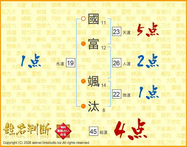 國富颯汰さんの人運は26画の2点!