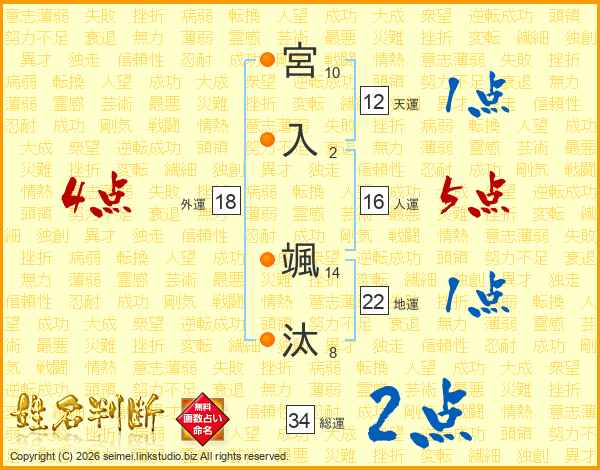 宮入颯汰さんの総運は34画の2点!