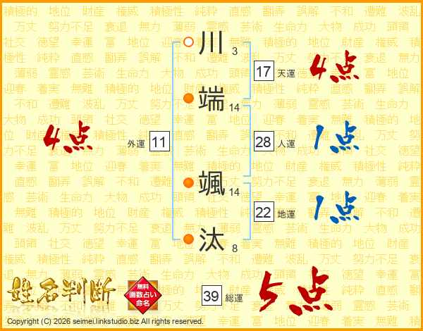 川端颯汰さんの総運は39画の5点!
