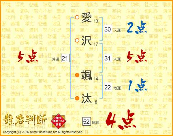 愛沢颯汰さんの総運は52画の4点!