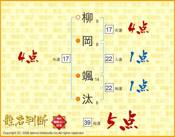 柳岡颯汰さんの外運は17画の4点!