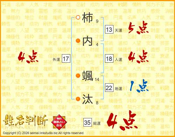 柿内颯汰さんの総運は35画の4点!