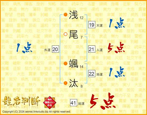 浅尾颯汰さんの総運は41画の5点!