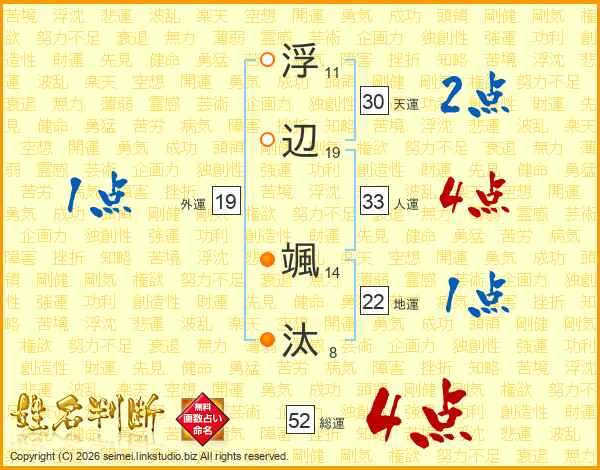浮辺颯汰さんの総運は52画の4点!