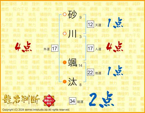 砂川颯汰さんの総運は34画の2点!