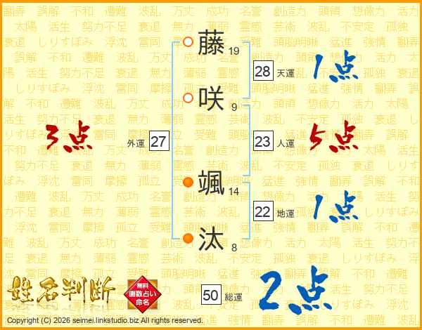 藤(19画)咲(9画) 颯(14画)汰(8画)