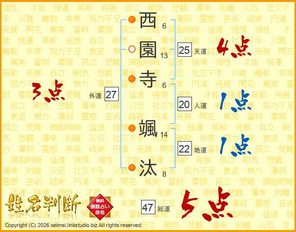 西園寺颯汰さんの総運は47画の5点!