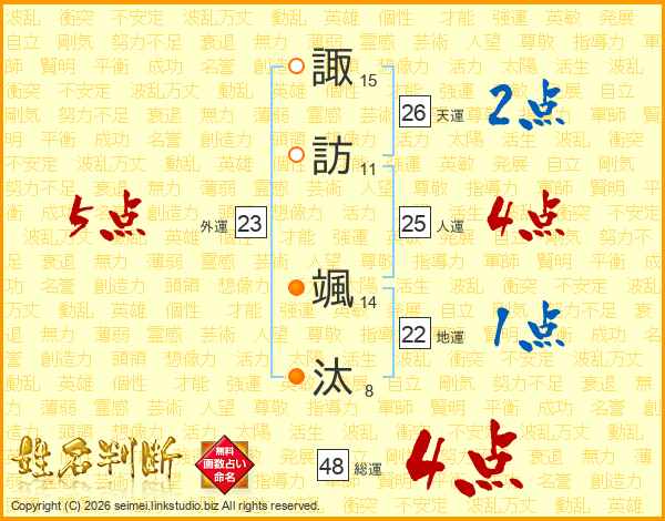 諏訪颯汰さんの総運は48画の4点!