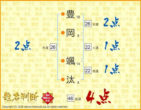 豊岡颯汰さんの天運は26画の2点!