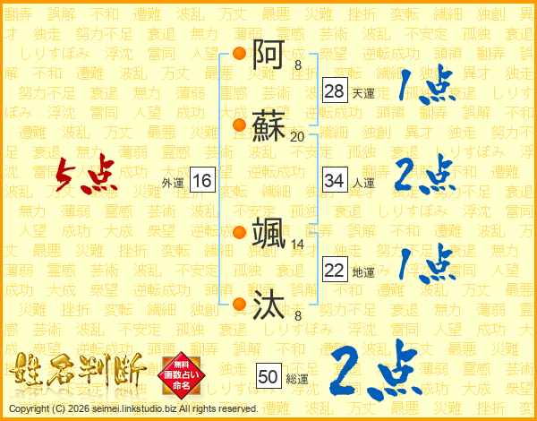 阿蘇颯汰さんの総運は50画の2点!