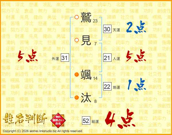 鷲見颯汰さんの総運は52画の4点!