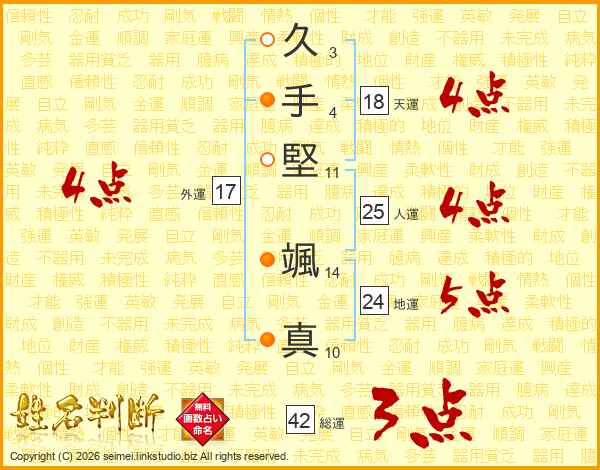 久手堅颯真さんの外運は17画の4点!