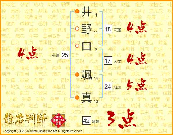 井(4画)野(11画)口(3画) 颯(14画)真(10画)