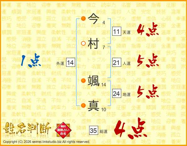 今村颯真さんの天運は11画の4点!