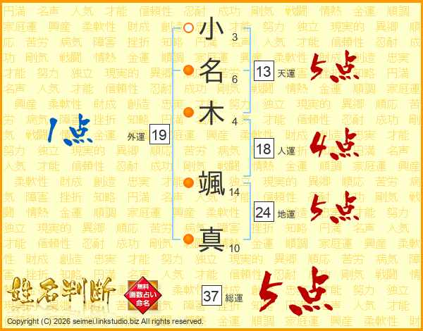 小(3画)名(6画)木(4画) 颯(14画)真(10画)