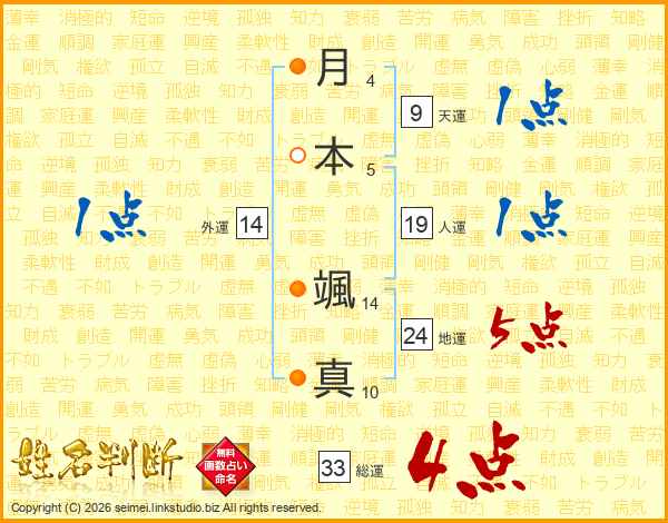 月本颯真さんの総運は33画の4点!