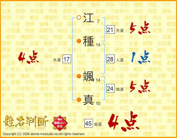 江種颯真さんの総運は45画の4点!