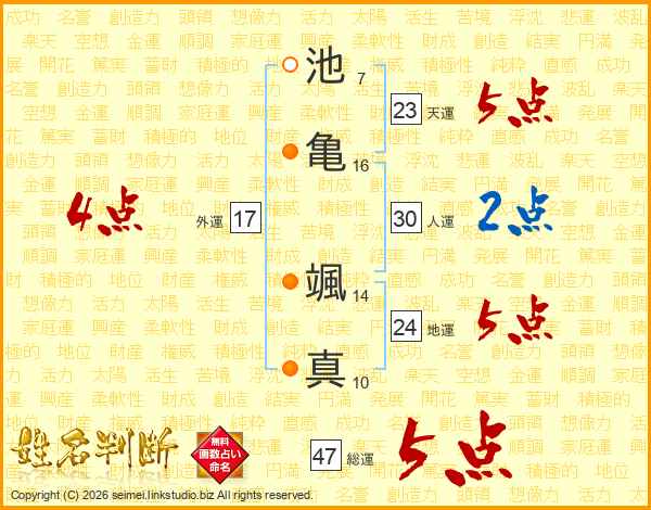 池亀颯真さんの総運は47画の5点!