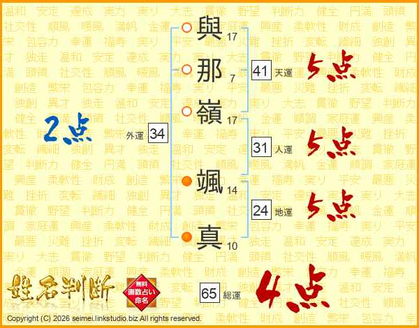 與那嶺颯真さんの総運は65画の4点!