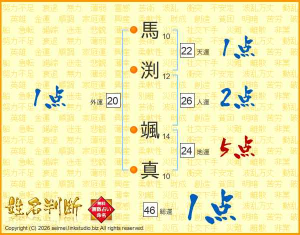 馬渕颯真さんの総運は46画の1点!