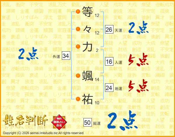等(12画)々(12画)力(2画) 颯(14画)祐(10画)