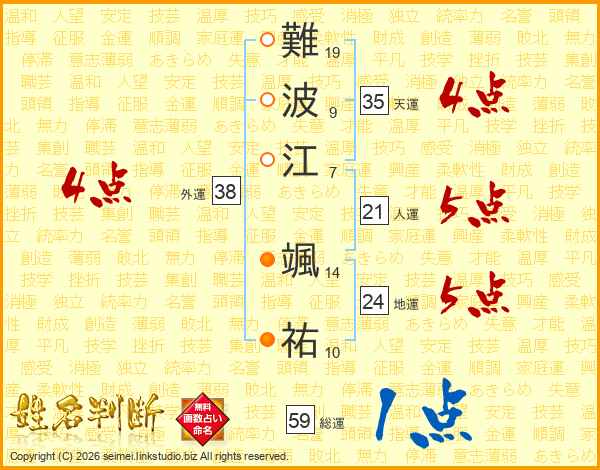 難波江颯祐さんの天運は35画の4点!