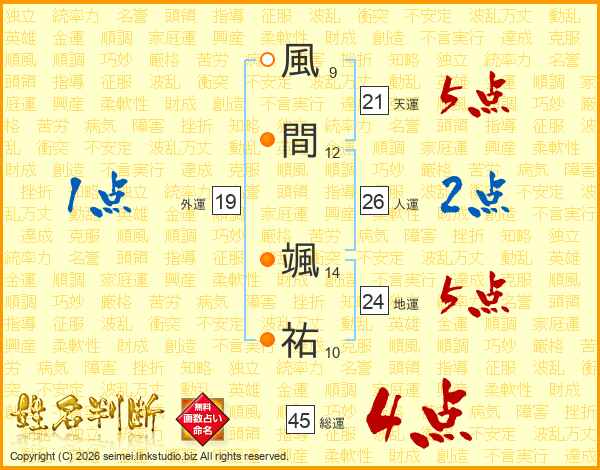 風間颯祐さんの総運は45画の4点!