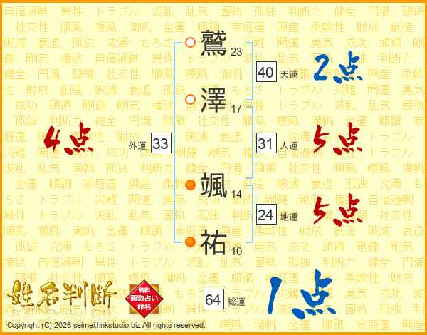 鷲澤颯祐さんの総運は64画の1点!