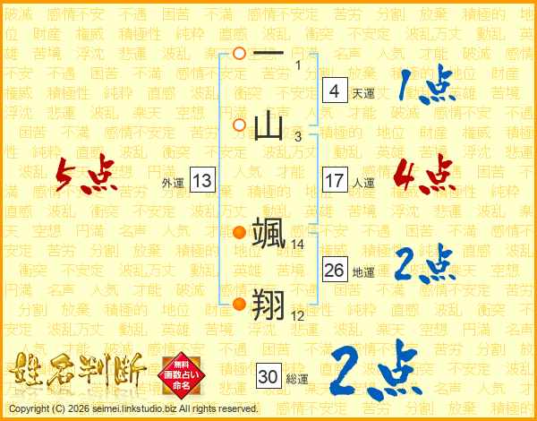 一山颯翔さんの地運は26画の2点!