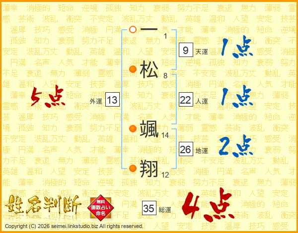 一松颯翔さんの総運は35画の4点!