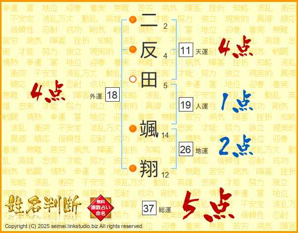 二反田颯翔さんの総運は37画の5点!