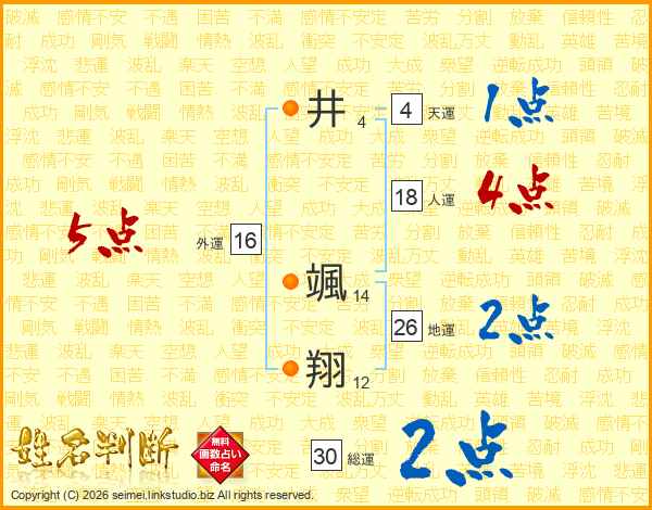 井(4画) 颯(14画)翔(12画)