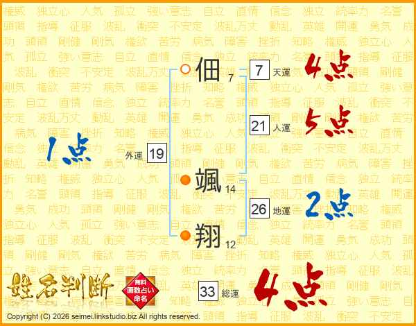 佃颯翔さんの総運は33画の4点!