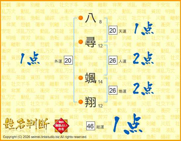 八(8画)尋(12画) 颯(14画)翔(12画)