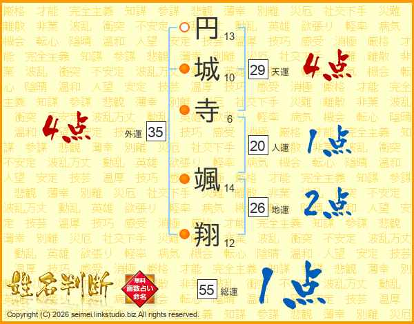 円城寺颯翔さんの総運は55画の1点!