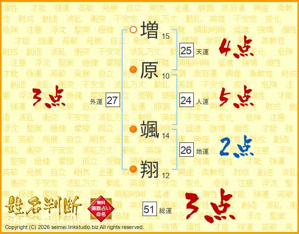 増原颯翔さんの総運は51画の3点!