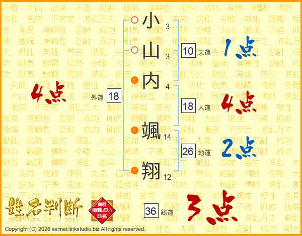 小山内颯翔さんの地運は26画の2点!