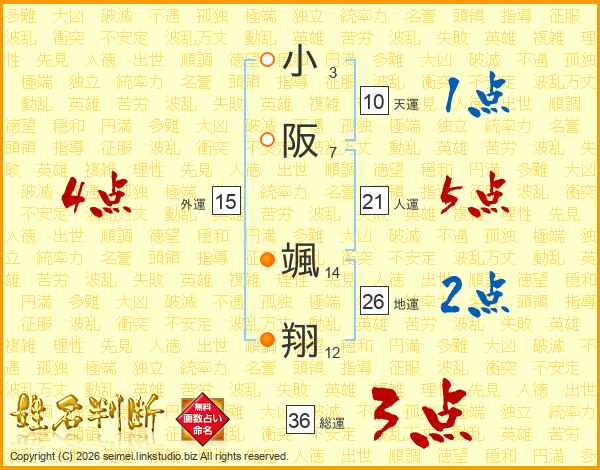 小阪颯翔さんの地運は26画の2点!