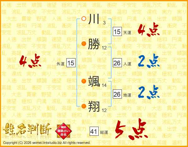川勝颯翔さんの総運は41画の5点!