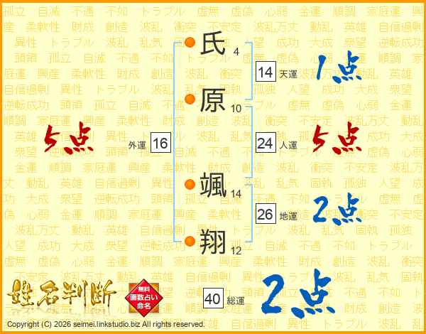 氏原颯翔さんの人運は24画の5点!