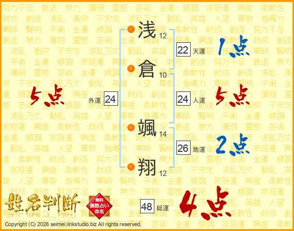浅倉颯翔さんの総運は48画の4点!