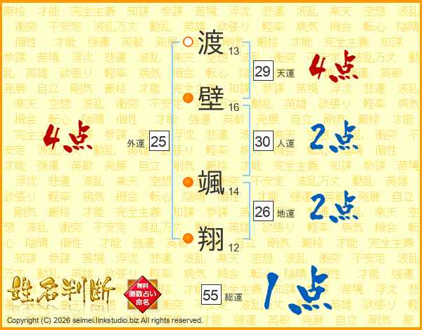 渡壁颯翔さんの地運は26画の2点!