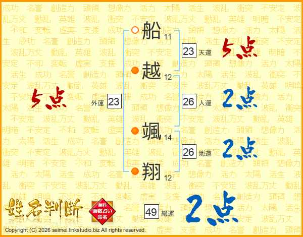 船越颯翔さんの総運は49画の2点!