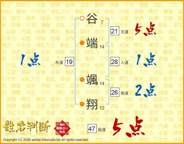 谷端颯翔さんの総運は47画の5点!